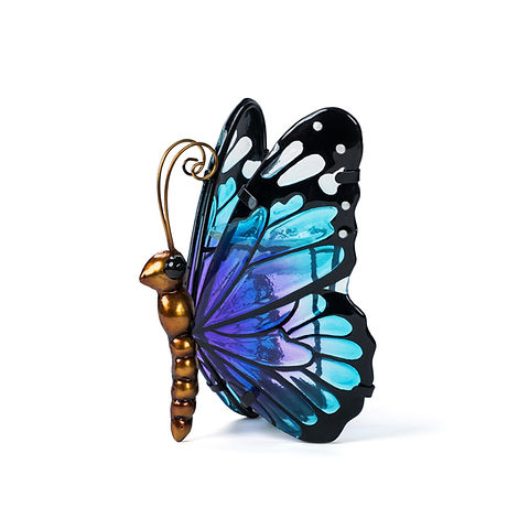 Crafted with precision and passion, the Green Tealight Butterfly stands gracefully at 22cm in height, with wings spanning 17.5cm in width and a depth of 16.5cm. Its ethereal wings, delicately fashioned from glass, serve as both a canvas for captivating hues and a vessel for aromatic bliss.