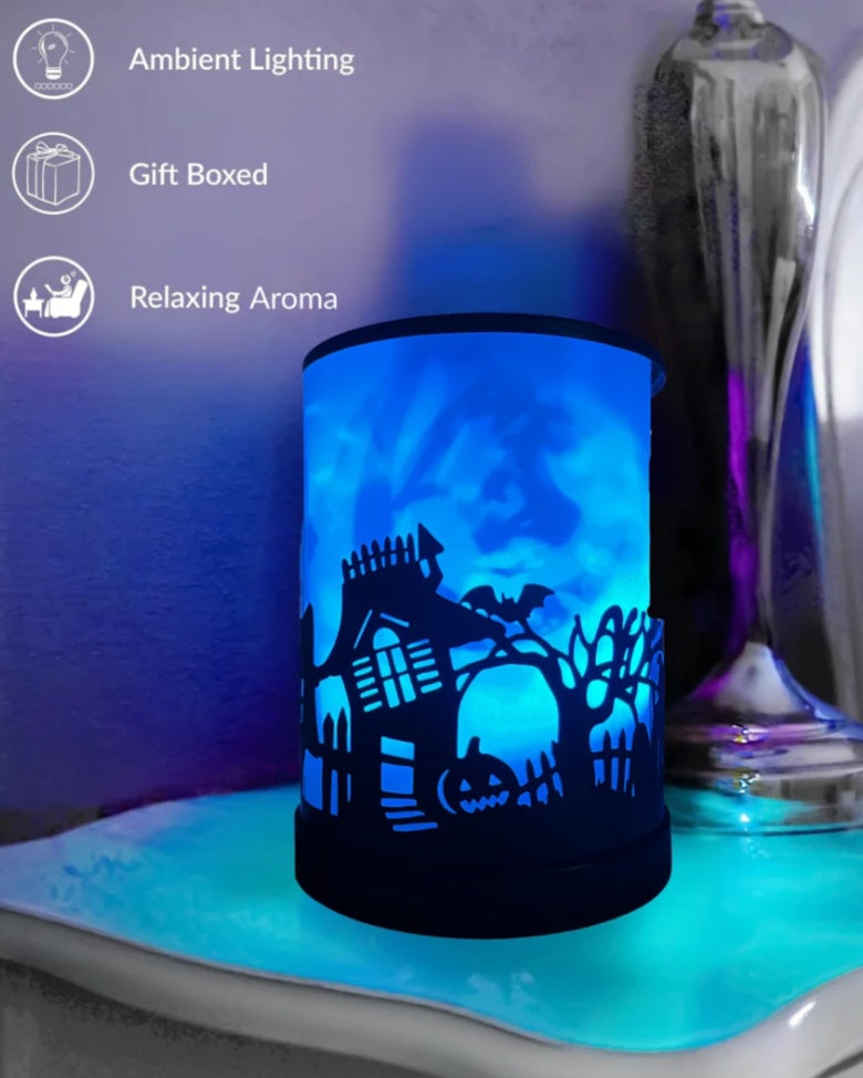 Transform your home into a spooky, fragrant, and visually stunning space with the Cello Halloween Colour Changing Electric Melt Burner. Perfectly themed for Halloween, this unique wax burner fills your room with your favourite scents while creating a captivating colour-changing light show. The silhouette designs of haunted houses, bats, and pumpkins add a festive and fun touch to your décor.