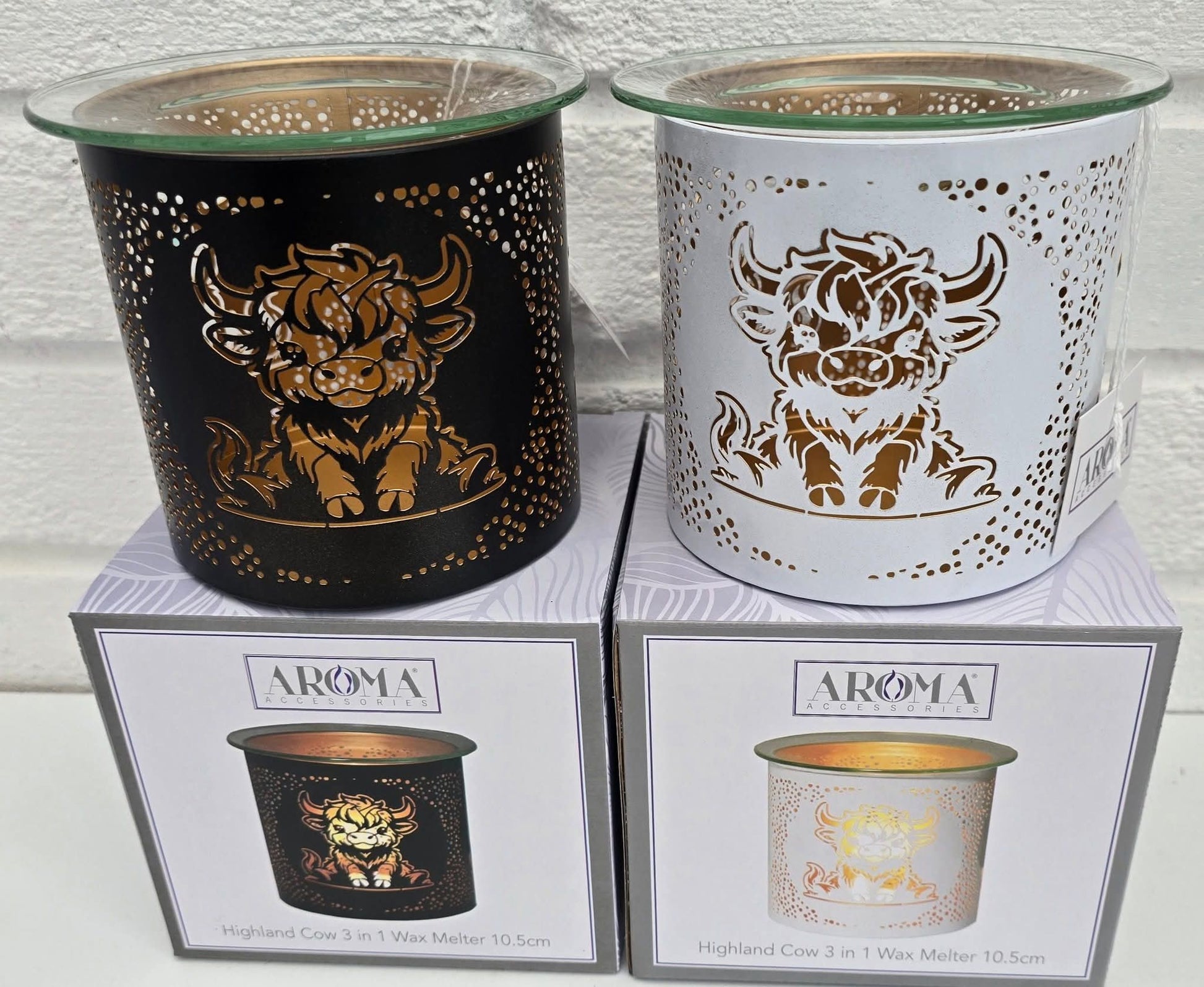Tealight Wax Melter and Candle Holder- Black & Gold Silhouette Highland Cow 10.5cm