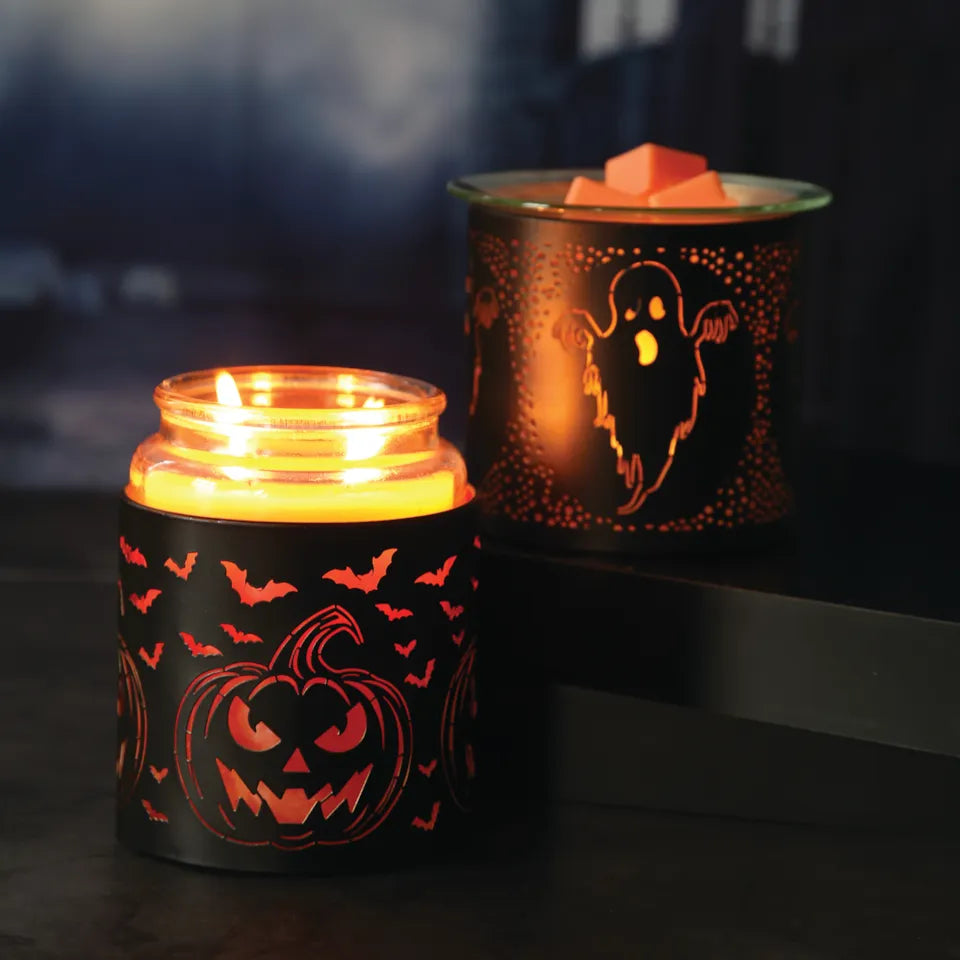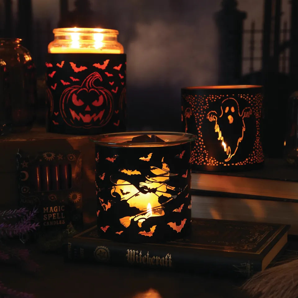 Tealight Wax Melter and Candle Holder- Black & Gold Silhouette Pumpkin 10.5cm