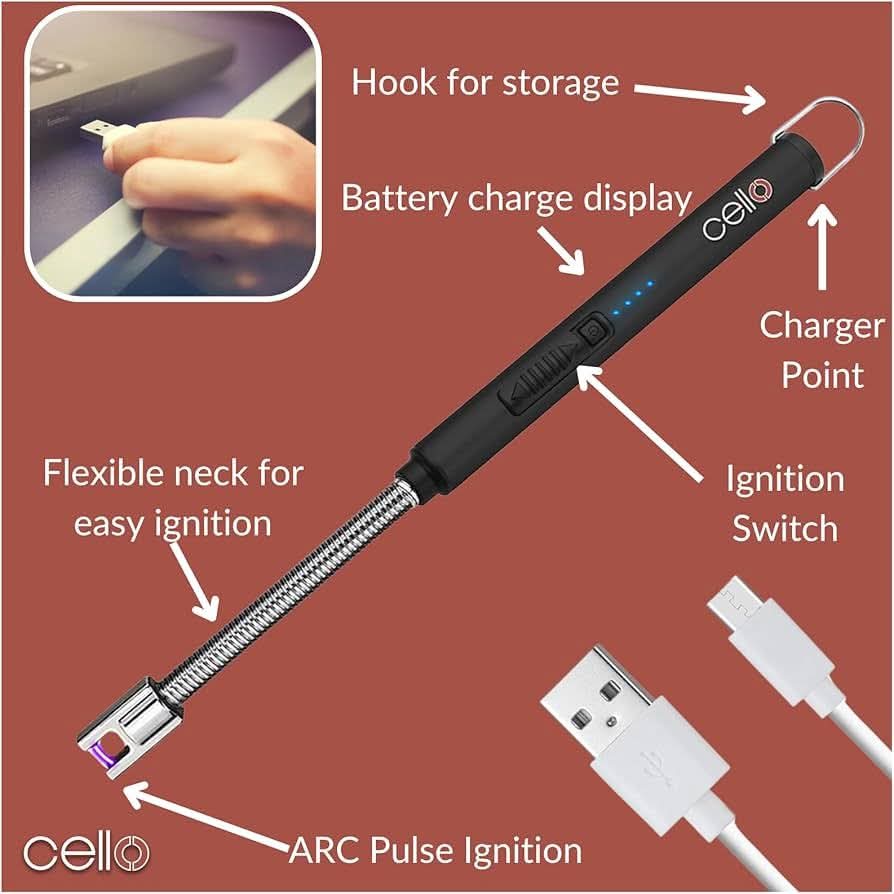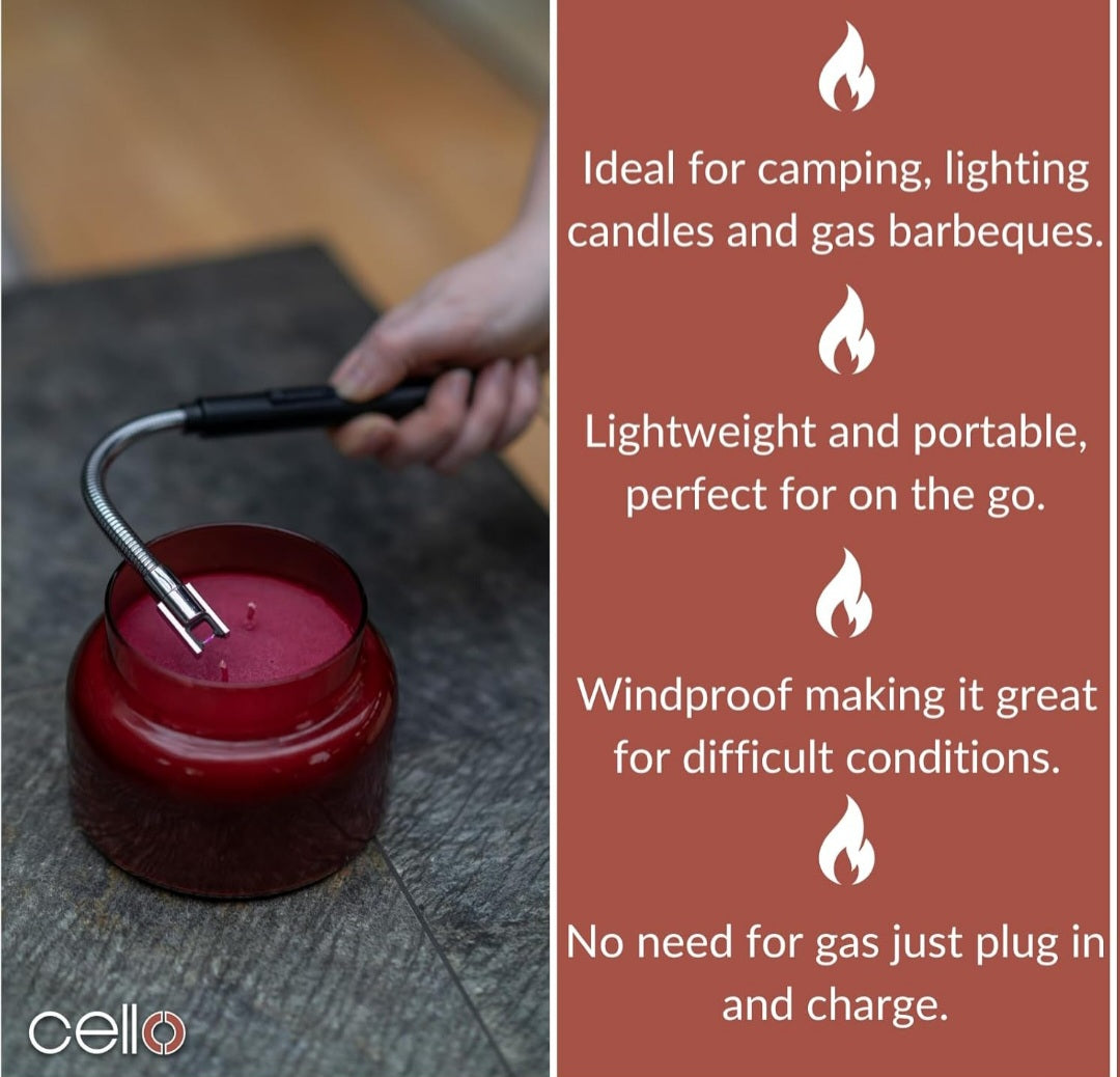 Portable: Combined with the safety lock, feel comfortable transporting a Cello arc lighter about. With a sleek, modern design and lightweight material it makes a great electric lighter for on the go.