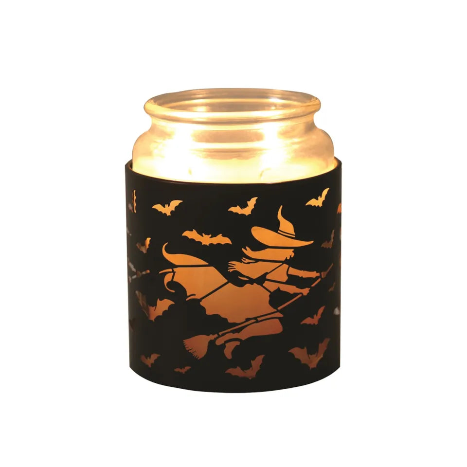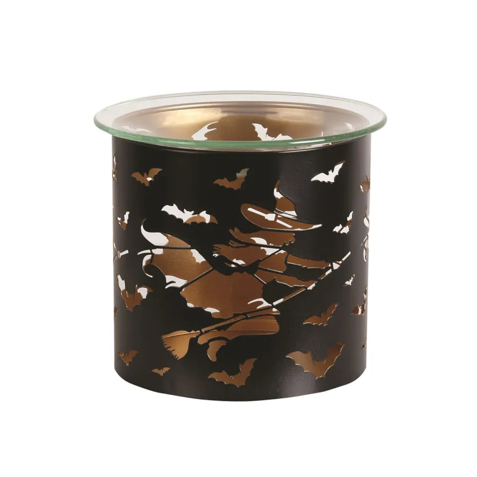 Tealight Wax Melter and Candle Holder - Black & Gold Silhouette Witch 10.5cm